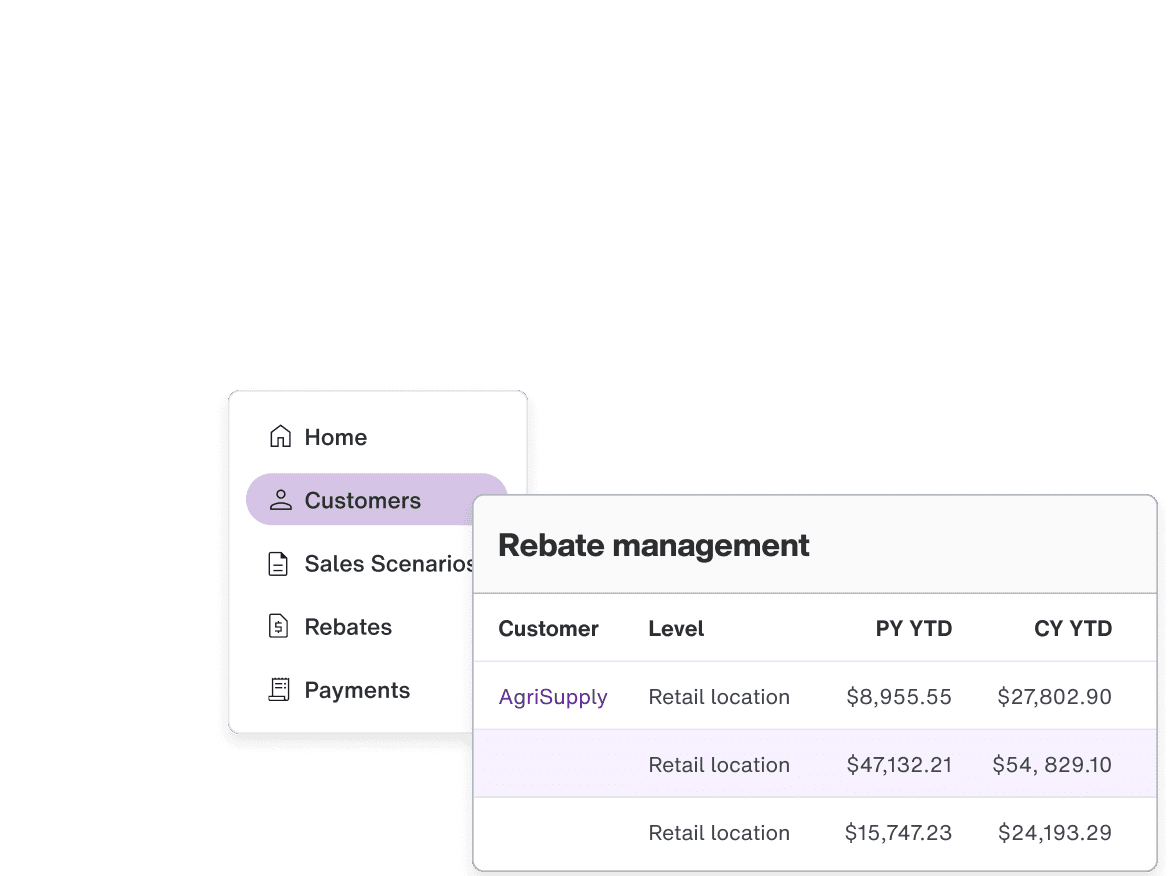 Our rebate management software consolidates all rebate programs into a single dashboard, allowing you to monitor program performance, track qualifications and make in-season adjustments. This reduces manual work and improves visibility across multiple programs.